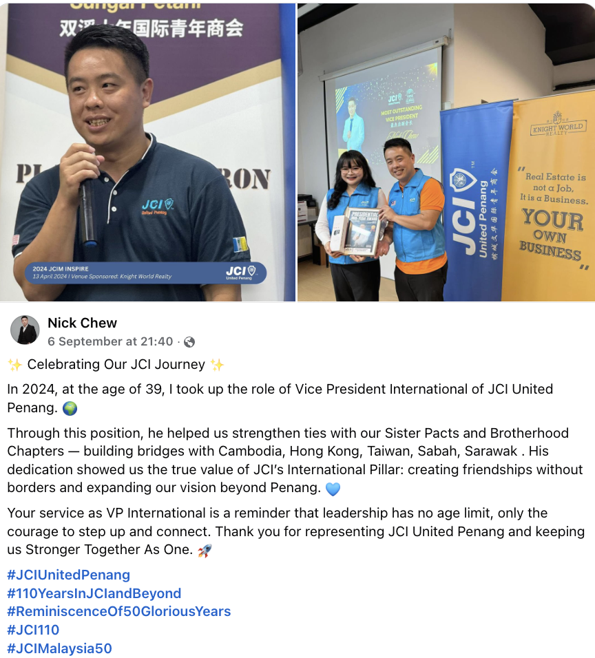 JCI United Penang is a local chapter of Junior Chamber International (JCI), a global network of young active citizens aged 18–40.